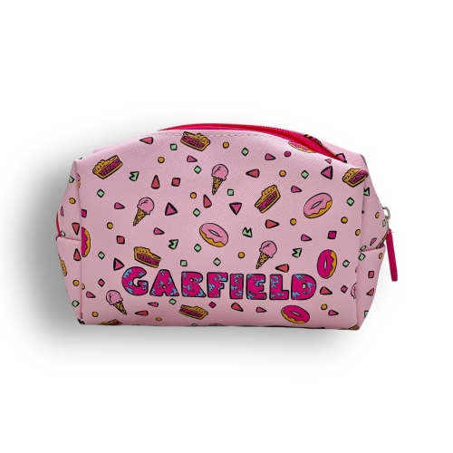 Neceser de Garfield en color rosado que luce un diseño divertido y encantador protagonizado por el famoso gato. Ideal para llevar cosméticos u objetos pequeños, su tamaño compacto lo convierte en un accesorio práctico y fácil de transportar en cualquier bolso.