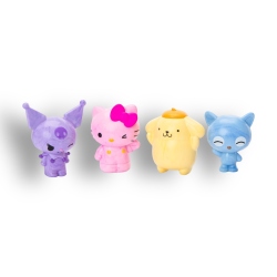 Juega sin parar con tus personajes favoritos de Sanrio en este set de figuras que incluye a Hello Kitty, Pompompurin, Kuromi y Chococat. Cada figura viene en colores vibrantes con detalles únicos en moños y ojos, ideales para dar vida a momentos llenos de ternura y diversión.