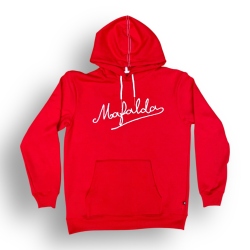 Revive el ingenio clásico con esta polera roja de algodón afranelado de Mafalda. Incluye capucha y un diseño frontal con la palabra “Mafalda” en relieve, mientras que en la parte posterior presenta una ilustración en negro de la icónica personaje, combinando comodidad y estilo con un toque nostálgico.