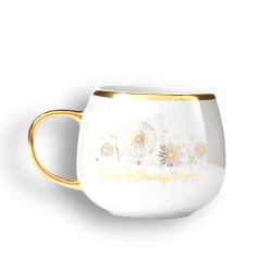 Empieza el día con un toque de polvo de hadas. Esta taza de Walt Disney World luce un acabado iridiscente de ensueño, una ilustración de un castillo dorado y festivos fuegos artificiales. Con su encantadora forma redondeada y detalles dorados, es imprescindible para los fans de Disney que quieran añadir un toque de magia a su rutina matutina.